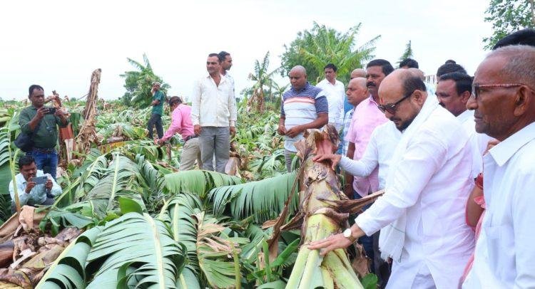 जळगाव, 09 – जिल्ह्यात 6 आणि 7 मे रोजी झालेल्या अवकाळी पावसासह वादळामुळे सुमारे 7 हजार 235 हेक्टरवरील पिकांचे नुकसान झाले आहे. या पार्श्वभूमीवर पालकमंत्री गुलाबराव पाटील यांनी आज जळगाव व चोपडा तालुक्यातील वादळग्रस्त भागांची पाहणी केली. शेतकऱ्यांना धीर देत त्यांनी स्पष्ट केले की, एकही नुकसानग्रस्त शेतकरी मदतीपासून वंचित राहणार नाही.