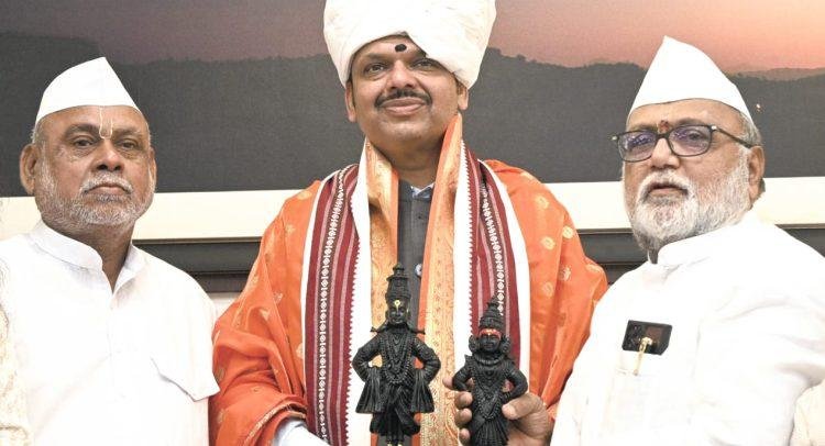 यावेळी मुख्यमंत्री फडणवीस यांचा मंदिर समितीच्या वतीने विणा, वारकरी पटका, श्रींची मूर्ती, उपरणे, चिपळ्या देऊन सन्मान करण्यात आला. यावेळी मंदिर समितीच्या सदस्या शकुंतला नडगिरे, संभाजी शिंदे, ह.भ.प. ज्ञानेश्वर देशमुख जळगावकर, ॲड. माधवी निगडे, अतुलशास्त्री भगरे गुरुजी, ह.भ.प. प्रकाश जवंजाळ, ह.भ.प. शिवाजीराव मोरे, कार्यकारी अधिकारी राजेंद्र शेळके उपस्थित होते.