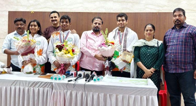 ठाणे 02 – वेगाने वाहणारा वारा.. अंधार.. समुद्राच्या लाटा अंगावर झेलत ठाणेकर जलतरणपटूंनी इंग्लंड ते फ्रान्स हे 46 कि.मी.चे सागरी अंतर यशस्वीपणे पार करुन ठाण्याच्या शिरपेचात मानाचा तुरा रोवला आहे. मानव मोरे, आयुष तावडे व आयुषी आखाडे या जलतरणपटूंनी केलेल्या कौतुकास्पद कामगिरीबद्दल आज ठाण्यात झालेल्या पत्रकार परिषदेत ठाण्याचे खासदार नरेश म्हस्के यांनी त्यांचा सन्मान करुन त्यांना पुढील वाटचालीसाठी शुभेच्छा दिल्या.