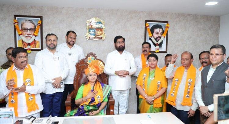 ठाणे (11) : ठाणे महानगरपालिकेच्या महापौर व उपमहापौर पदाची निवडणूक 3 फेब्रुवारी रोजी पार पडली. या निवडणूकीत शिवसेनेच्या शर्मिला रोहित पिंपळोलकर यांची महापौर तर भारतीय जनता पक्षाचे कृष्णा दादू पाटील यांची उपमहापौर म्हणून बिनविरोध निवड झाली होती. आज राज्याचे उपमुख्यमंत्री एकनाथ शिंदे यांच्या उपस्थितीत ठाण्याच्या नवनिर्वाचित महापौर शर्मिला पिंपळोलकर यांनी पदभार स्विकारला. यावेळी महापालिका आयुक्त सौरभ राव उपस्थित होते.