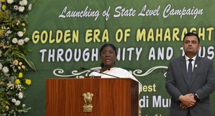 राष्ट्रपती द्रौपदी मुर्मू म्हणाल्या, महाराष्ट्राच्या भूमीतील छत्रपती शिवाजी महाराज, महात्मा जोतिराव फुले, सावित्रीबाई फुले, डॉ. बाबासाहेब आंबेडकर, छत्रपती शाहू महाराज, स्वातंत्र्यवीर सावरकर आदी महान रत्नांनी देश व जगाला सामाजिक समरसता व राष्ट्रप्रेमाचा संदेश दिला. स्वातंत्र्य प्राप्तीनंतरही राज्याने देशाच्या विकासात महत्त्वाचे योगदान दिले आहे. याच महाराष्ट्रात ब्रह्मकुमारीजच्या एकता व विश्वास आधारित राज्यव्यापी अभियानाचा शुभारंभ होत आहे. यातून आत्मशांती, परस्पर सौहार्द, सकारात्मक विचार आदी जीवनमूल्यांचा समाजात प्रसार होऊन समृद्ध राज्य घडण्यासाठी प्रेरणा मिळेल. हाच मार्ग पुढे देशभर प्रशस्त होऊन परस्परातील भेदभाव सोडून करुणा, परस्पर प्रेम व समन्वयातून विकसित भारतासाठी सर्व जनता एकतेच्या धाग्यात गुंफली जाईल,असे राष्ट्रपती मुर्मू यांनी सांगितले.