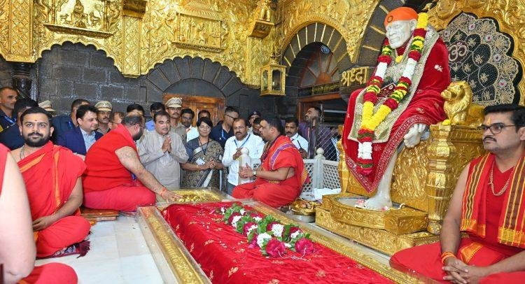 शिर्डी,13– केंद्रीय रस्ते वाहतूक व परिवहन मंत्री नितीन गडकरी यांनी श्री साईबाबा समाधी मंदिराला भेट देऊन श्री साईबाबांचे दर्शन घेतले. याप्रसंगी त्यांनी द्वारकामाई व गुरूस्थान मंदिराचेही दर्शन घेतले.