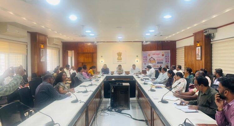 श्री. गुरु तेग बहादुर साहिबजी यांच्या 350 व्या शहीदी समागम कार्यक्रमाच्या नियोजनाबाबतची बैठक जिल्हाधिकारी श्री. पाटील यांच्या अध्यक्षतेखाली जिल्हाधिकारी कार्यालयात संपन्न झाली. या बैठकीला अप्पर जिल्हाधिकारी मल्लिकार्जुन माने, निवासी उपजिल्हाधिकारी नागेश पाटील, जिल्हा पुरवठा अधिकारी वैशाली राजमाने, प्रांताधिकारी आशिष बारकुल, तहसीलदार समीर यादव, ग्यानीजी सुशीलसिंह, या कार्यक्रमाचे जिल्हास्तरीय संघटक सचिन वालेकर यांच्यासह विविध विभागांचे अधिकारी उपस्थित होते.