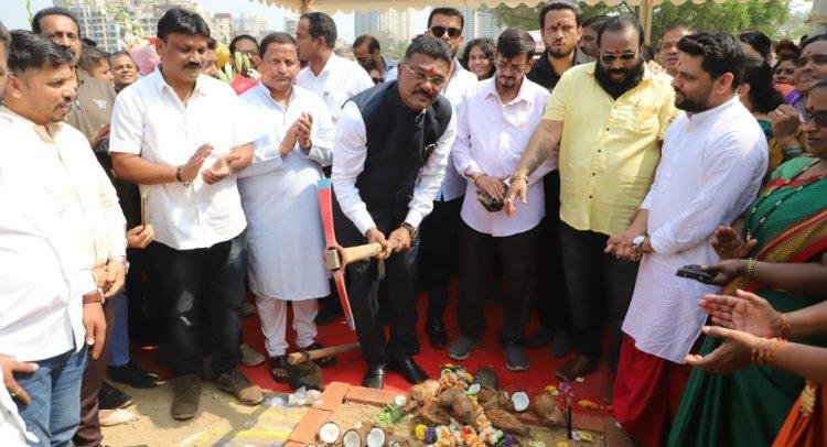ठाणे 10 : ठाणे महानगरपालिकेच्या वतीने बोरिवडे मैदान, कासारवडवली येथे आरक्षणे व सुविधा भूखंड विकसित करण्याच्या कार्यक्रमांतर्गत बांधण्यात येत असलेल्या धर्मवीर आनंद दिघे क्रीडा संकुलाचे भूमिपूजन परिवहन मंत्री प्रताप सरनाईक यांच्या हस्ते रविवारी दुपारी करण्यात आले.