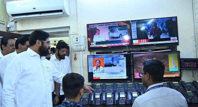 यावेळी उपमुख्यमंत्री एकनाथ शिंदे यांनी ठाणे महापालिकेच्या आपत्ती व्यवस्थापन कक्षाच्या कामाची माहिती घेतली.
