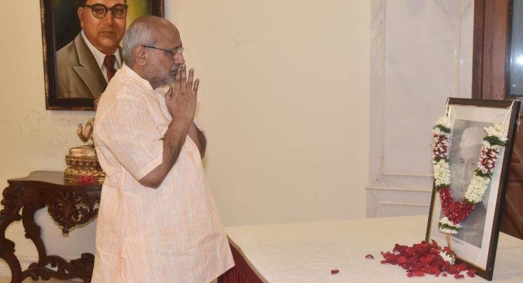 मुंबई, १४ : देशाचे पहिले प्रधानमंत्री पंडित जवाहरलाल नेहरु यांच्या जयंतीनिमित्त राज्यपाल सी. पी. राधाकृष्णन यांनी राजभवन येथे त्यांच्या प्रतिमेला पुष्पांजली अर्पण करुन अभिवादन केले.
