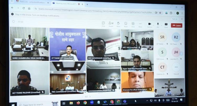 पालकमंत्री श्री. देसाई यांच्या अध्यक्षतेखाली आज मान्सूनपूर्व आढावा बैठक दूरदृश्यप्रणालीद्वारे आयोजित करण्यात आली होती. यावेळी जिल्हाधिकारी कार्यालयातून जिल्हाधिकारी अशोक शिनगारे, जिल्हा आपत्ती व्यवस्थापन प्राधिकरणाचे मुख्य कार्यकारी अधिकारी तथा निवासी उपजिल्हाधिकारी सुदाम परदेशी, तहसीलदार संजय भोसले, जिल्हा आपत्ती व्यवस्थापन अधिकारी डॉ. अनिता जवंजाळ सहभागी झाले होते. तसेच ठाणे महापालिका आयुक्त सौरभ राव, नवी मुंबई महापालिका आयुक्त कैलास शिंदे, जिल्हा ग्रामीण पोलीस अधीक्षक डी. एस. स्वामी यांच्यासह जिल्हा परिषदेचे मुख्य कार्यकारी अधिकारी, तसेच मीरा भाईंदर, उल्हासनगर, भिवंडी, कल्याण डोंबिवली या महापालिकांचे आयुक्त, अंबरनाथ व बदलापूर नगरपरिषदेचे मुख्याधिकारी, सर्व उपविभागीय अधिकारी, तहसीलदार, ठाणे व नवी मुंबई पोलीस आयुक्त, रेल्वे, आरोग्य, सार्वजनिक बांधकाम, एसटी महामंडळ, पशुसंवर्धन, कृषी, जलसंपदा आदी विभागाचे अधिकारी यावेळी ऑनलाईन उपस्थित होते.