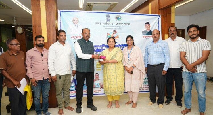नागपूर शहराला पाणी पुरवठ्यासह सुमारे 1 लाख हेक्टर क्षेत्रापेक्षा जास्त क्षेत्राला सिंचीत करणाऱ्या पेंच नदीच्या पवित्र पाण्याचा जलकलश महसूल मंत्री तथा पालकमंत्री चंद्रशेखर बावनकुळे यांच्या हस्ते जलसंपदा विभागाच्या नागपूर येथील मुख्य अभियंता सोनाली चोपडे यांना सुर्पूद करण्यात आला. याचबरोबर राज्याचे वित्त व नियोजन राज्यमंत्री ॲड. आशिष जयस्वाल यांच्या हस्ते रामटेक येथून वाहनाऱ्या सूर नदीचे पवित्र पाण्याचा कलश कार्यकारी अभियंता अनिता पराते यांच्याकडे सुर्पूद करण्यात आला. यावेळी मौदा नगराध्यक्ष प्रसन्ना तिडके व पदाधिकारी उपस्थित होते.