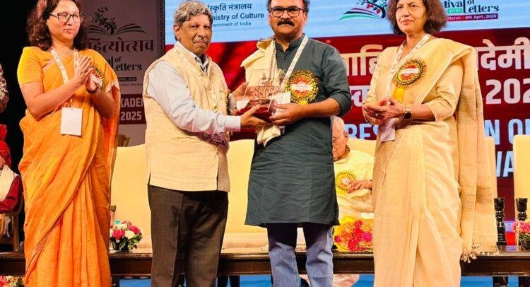 नवी दिल्ली, 0१ : साहित्य अकादमीतर्फे २०२५ या वर्षासाठी जाहीर करण्यात आलेल्या साहित्य पुरस्कारांचे आज येथे वितरण करण्यात आले. मराठी भाषेसाठी जळगाव येथील प्रसिद्ध चित्रकार व लेखक राजू बाविस्कर यांना हा पुरस्कार प्रदान करण्यात आला. मानचिन्ह, शाल आणि एक लाख रुपये रोख असे या पुरस्काराचे स्वरूप आहे.