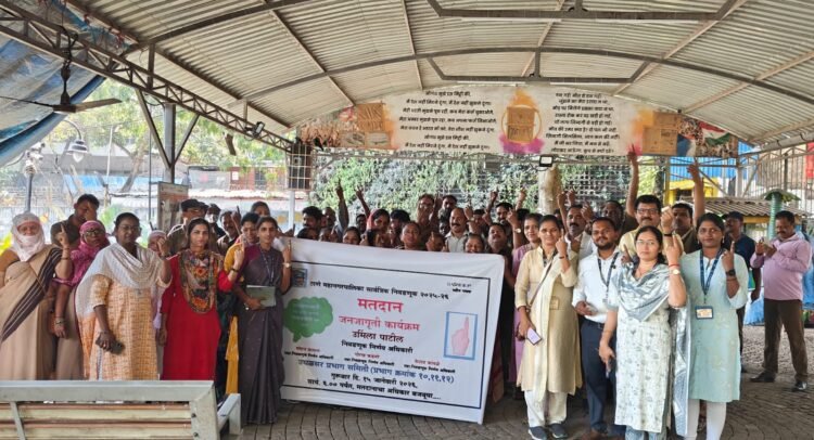 आगामी ठाणे महानगरपालिका सार्वत्रिक निवडणूक 2025 च्या पार्श्वभूमीवर निवडणूक निर्णय अधिकारी उर्मिला पाटील यांच्या पुढाकाराने स्वीप (SVEEP) पथकाच्या वतीने उथळसर प्रभाग समितीअंतर्गत (प्रभाग क्र. 10,11 व 12) मतदार जनजागृती अभियान यशस्वीपणे राबविण्यात आले. आंबे घोसाळे तलाव व केसर मिल सर्कल परिसरात स्वच्छता कर्मचाऱ्यांच्या सक्रिय सहभागातून ‘माझे मत – माझे भविष्य’ या संकल्पनेवर आधारित हे अभियान आयोजित करण्यात आले.
