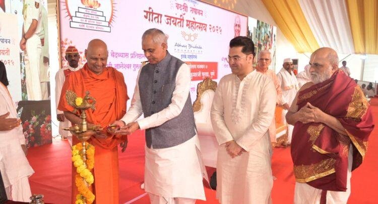 यावेळी अयोध्या येथील श्रीराम मंदिर तीर्थक्षेत्र प्रतिष्ठान अयोध्याचे कोषाध्यक्ष तथा श्रीकृष्ण जन्मभूमी मथुराचे उपाध्यक्ष गोविंद गिरी महाराज, गीता जयंती महोत्सवाचे स्वागताध्यक्ष अभय सुरेशकुमार भुतडा, गीता परिवाराचे कार्याध्यक्ष संजय मालपाणी आदी उपस्थित होते.