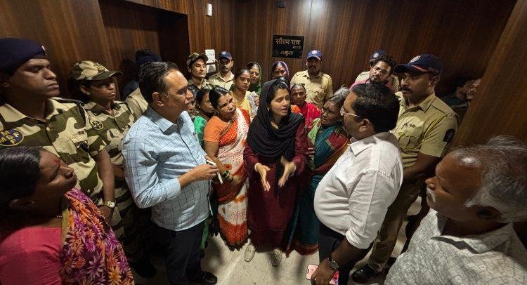 गेल्या अनेक दिवसांपासून मुंब्रा, कौसा परिसरात पाण्याचे प्रचंड दुर्भिक्ष्य आहे. पाण्याचा पुरवठा सुरळीत करावा, यासाठी मुंब्रा परिसरातील नागरिकांनी अनेकदा आंदोलने केली असून पालिकेकडून केवळ आश्वासने दिली जात आहेत. पाण्याचा पुरवठा नियमित होत नसल्याने नागरिकांना चक्क पाणी माफियांकडून पाणी विकत घ्यावे लागत आहे. त्या निषेधार्थ मर्जिया पठाण यांच्या नेतृत्वाखाली हे आंदोलन करण्यात आले. मर्जिया पठाण आणि सुमारे 25 ते 30 महिलांनी ठामपा आयुक्त सौरव राव यांच्या दालनाबाहेर ठिय्या आंदोलन केले. सुमारे अर्धा तास ठिय्या आंदोलन केल्यानंतर पाणीपुरवठा विभागाचे कार्यकारी अभियंते विनोद पवार यांनी मर्जिया पठाण यांची भेट घेतली. पाणी वितरण व्यवस्थेच्या रिमोल्डींगचे काम अंतिम टप्प्यात असून ते पूर्ण झाल्यावर पाणी पुरवठा सुरळीत होईल, असे आश्वासन पवार यांनी दिले. त्यावर मर्जिया पठाण या चांगल्याच संतापल्या.