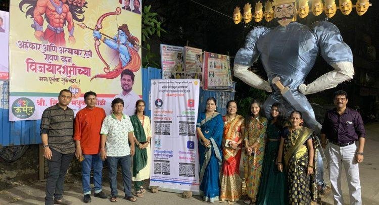 ठाणे,15:- आगामी विधानसभा निवडणुकीच्या पार्श्वभूमीवर ठाणे शहरातील मतदारांमध्ये मतदार जनजागृती करण्यासाठी 148 ठाणे विधानसभा मतदारसंघ निवडणूक निर्णय अधिकारी श्रीमती उर्मिला पाटील यांच्या मार्गदर्शनाखाली विविध उपक्रमांचे आयोजन करण्यात येत आहे. यामध्ये मतदान जनजागृती रॅली, कार्यशाळा, पथनाट्य आणि विद्यार्थ्यांच्या निबंध व चित्रकला स्पर्धांचा समावेश आहे.याच उपक्रमाचा भाग म्हणून दसरा विजयादशमी उत्सवाचे औचित्य साधून महागिरी कोळीवाडा येथे नागरिकांसोबत मतदान जनजागृती अभियान राबविण्यात आले.