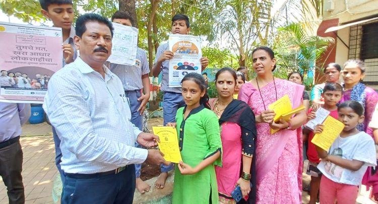 ‘मतदार राजा जागा हो.. लोकशाहीचा धागा हो’, आपले मत हा लोकशाहीचा खरा आधार असा संदेश देणारे फलक विद्यार्थ्यानी हातात घेवून शाळेत निकाल घेण्यासाठी येणाऱ्या पालकांमध्ये जनजागृती केली तसेच स्वीपच्या टिमने प्रत्येक वर्गात जावून मतदान करण्याचा संदेश पालकांना दिला. अठरावं वरीस मोक्याचं.. अशी जनजागृती शालेय विद्यार्थ्यांनी करुन आपल्या मोठया भावंडांना देखील मतदान करण्याचे आवाहन केले आहे.
