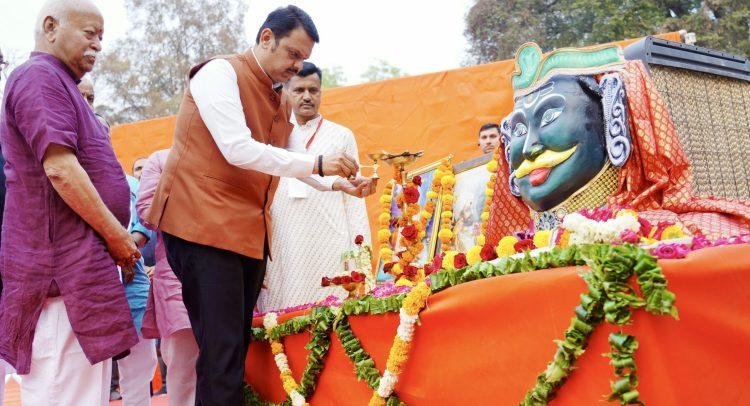 कामठीतील श्री महादेव घाट परिसरात आज शिव तांडव स्तोत्र पठण कार्यक्रमाचे आयोजन करण्यात आले होते. यावेळी आयोजित कार्यक्रमात मुख्यमंत्री देवेंद्र फडणवीस बोलत होते. राष्ट्रीय स्वयंसेवक संघाचे सरसंघचालक डॉ. मोहन भागवत, महसूल मंत्री तथा पालकमंत्री चंद्रशेखर बावनकुळे, आमदार परिणय फुके, माजी आमदार टेकचंद सावरकर, राजे मुधोजी भोसले आदी यावेळी उपस्थित होते.