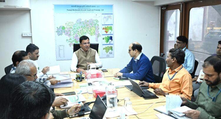 नानाजी देशमुख कृषी संजीवनी कार्यालयाच्या सभागृहात कृषी राज्यमंत्री ॲड. आशिष जयस्वाल यांनी नानाजी देशमुख कृषी संजीवनी प्रकल्प २.० चा आढावा घेतला. यावेळी प्रकल्प संचालक परिमल सिंह, कृषी विभागाचे उप सचिव श्री. चंदनशिवे यांच्यासह संबंधित अधिकारी उपस्थित होते.